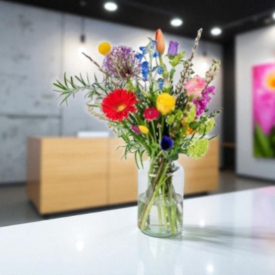 Wilt u uw bedrijf meer uitstraling geven, uw zaak een finishing touch geven, de balie iets minder saai maken, uw wachtruimte een beetje opfleuren of thuis gewoon genieten van een fris boeket?