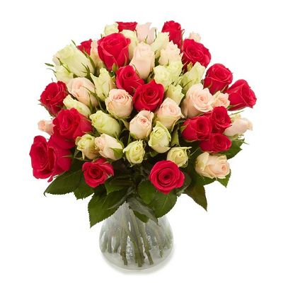 Liefdevol rozenboeket met verse rozen (40-50 cm) in verschillende roze en witte tinten. Verras je geliefde met deze schitterende, liefelijke bos rozen.