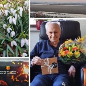 met mooie bloemen van Bloembinderij Heiloo en een waardebon van Restaurant Herberg Jan.